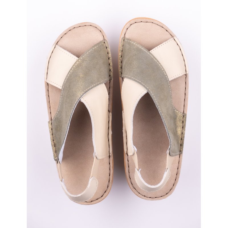 Anatomska sandale s kombinacijom zlatne i bež boje modni je dodatak i za najizbirljivije. Sandale imaju anatomski potplat te su ručno rađene od prave kože.